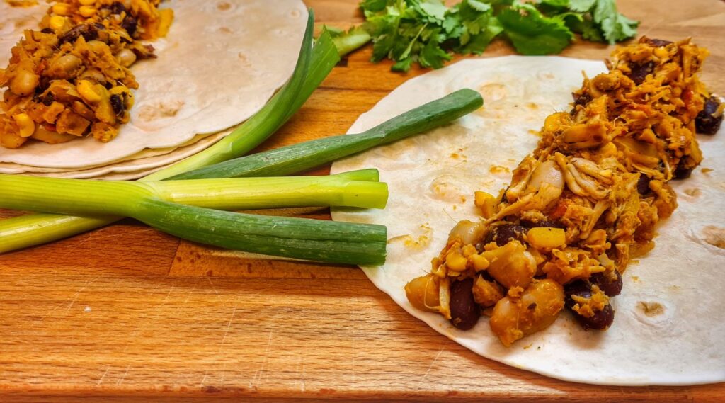 Mexická kuchyně to nejsou jen tacos a burritos. Jsou to také skvělé enchiladas! Obvykle je tortilla plněná masem a fazolemi, ale dnes zkusíme veganské enchiladas plněné chlebovníkem a fazolovým mixem! Zcela veganské, s chutnou omáčkou a zapečené v troubě!